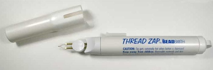 1200 volt thread burner by BeadSmith. Operates on a AA battery (included). Easy to use. Just press the side button to heat the tip and in seconds you have a red hot element that will "zap" the frayed edges of your bead work. This tool works great to fuse the stray ends of FireLine and make your work much more professional.